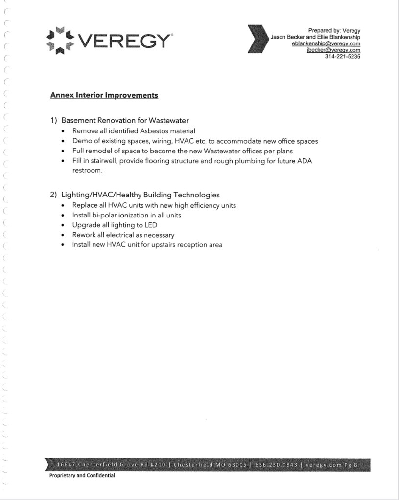 Commissioner Hasty responded that there is no asbestos in the ductwork. He felt that the work on the Annex would be completed quickly and they should be able to move employees over to work in the Annex soon after the project begins. Hasty said the contractor would be testing the Annex building every day during the repairs.