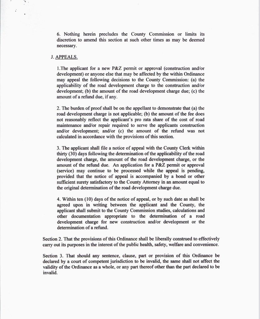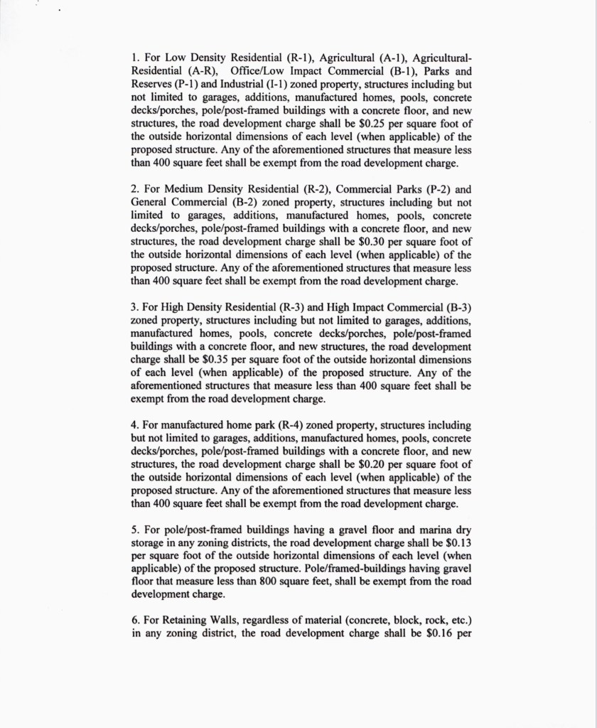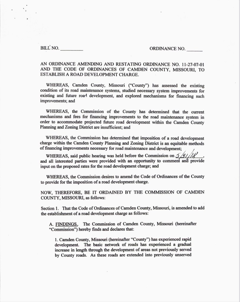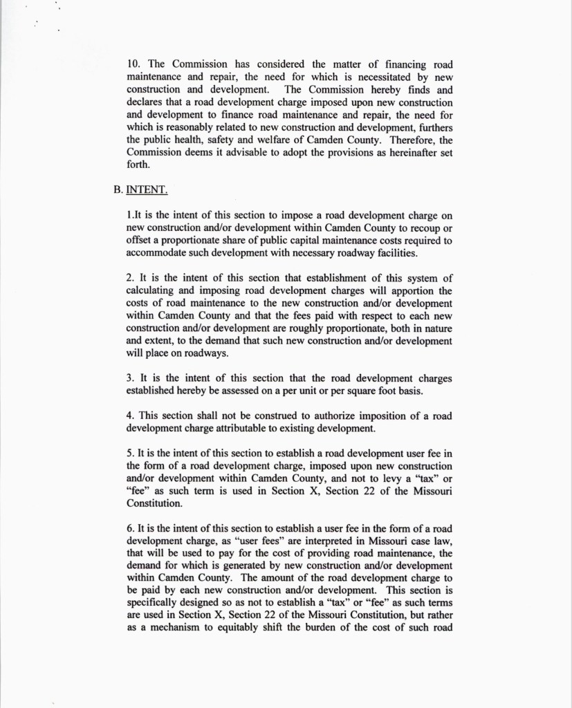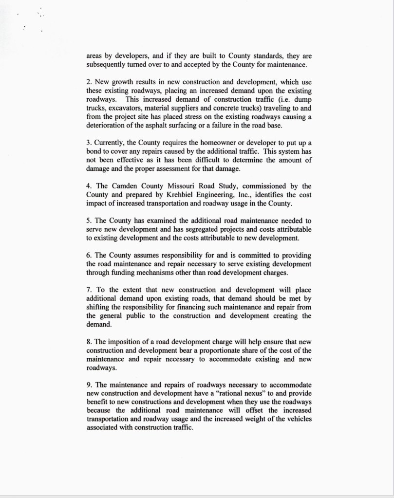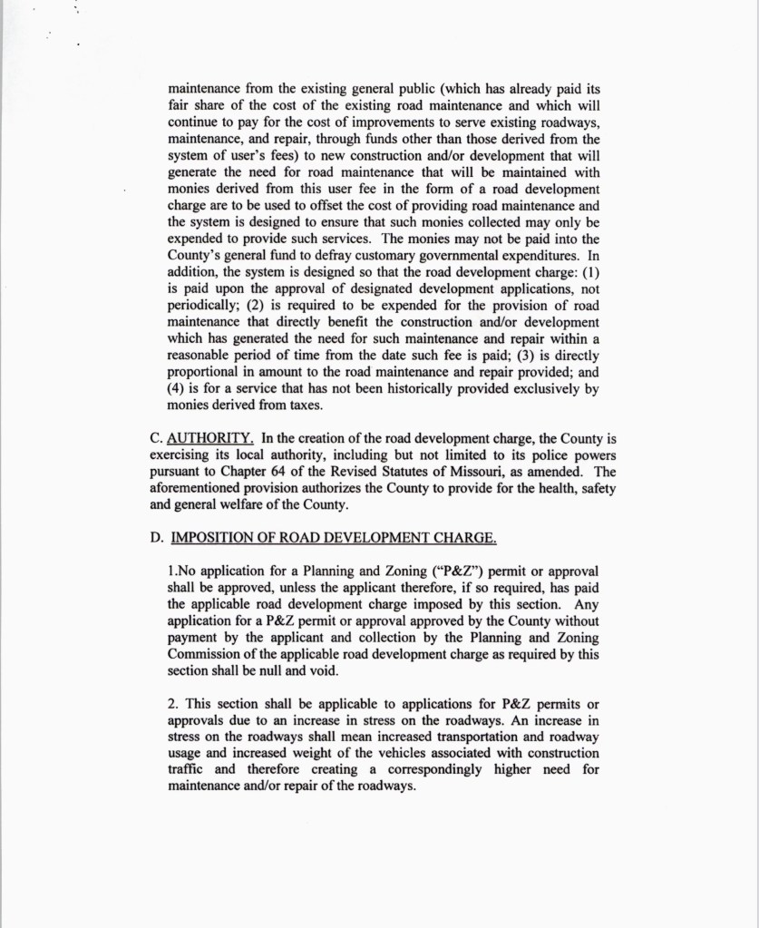 In this ordinance, the Commission claimed they were establishing a road impact fee because “it has been difficult to determine the amount of damage and the proper assessment for that damage.”