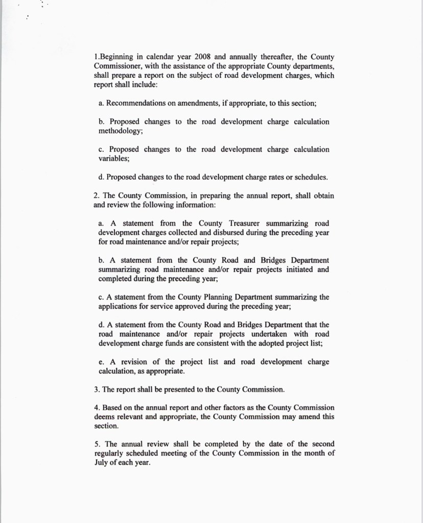 The County Commission has to prepare an annual report on Road Development Charges in July of each year. Which lucky Commissioner is going to be put in charge of that homework assignment?