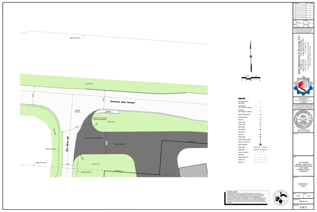 Kevin Luttrell, the HBSRD Administrator, stated that the normal process is that an engineer will prepare plans for a driveway entrance on the main parkway. They will then be reviewed and taken before the board. They only received the driveway entrance plans for the Toy Box project a week before.