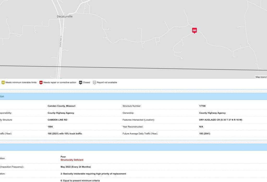This project is heavily funded through the MODOT and the Federal Highway Administration so the MODOT match on the project will be approximately 80%. Camden County will only pay 20% at the most. The Howe representative stated that the engineer’s estimate for this bridge was $1.3 million.