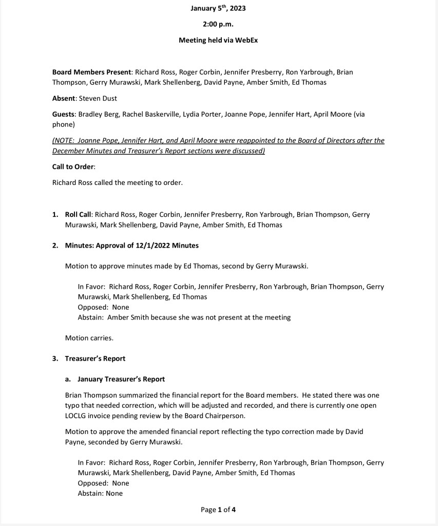 The LACDC website says that they have monthly meetings but they haven’t posted minutes from a meeting since February 2, 2023. The minutes from the January 5, 2023, meeting are below, for your reading pleasure: