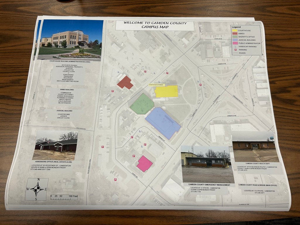 In Old Business, Commission Administrative Assistant Jordan Stanton coordinated with the GIS and E-911 Departments to create a map sign to post at three locations on the county administrative campus to help guide people to the various county departments.