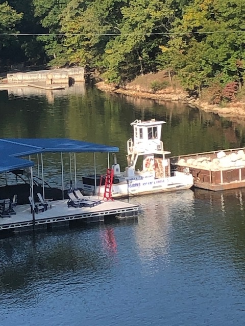 Ligouri explained that Pier 31 believes they own that piece of land. Rock Works is using the ramp to load its barges and run them out of the cove and onto the lake. The cove is narrow and Ligouri estimated that one of the barges was over eighty feet long. The cove is very crowded with docks on both sides. Ligouri said that Rock Works has hit several docks and even sank one of their barges in the cove. Ligouri felt that this barge activity is a major hazard with the crowded cove conditions.