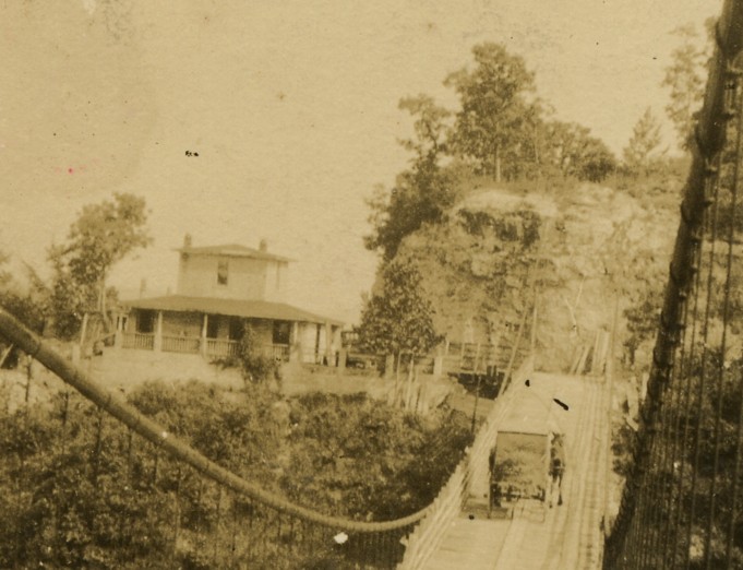 According to Bill Moulder, a friend of mine, a swinging bridge went from Pier 31 to the end of F Road. The bridge was demolished when the dam was being built. He also sent me some pictures of the bridge.
